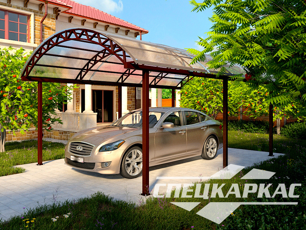 Арочная конструкция обеспечивает комфортное нахождение на защищенной от непогоды площадке автомобиля. Расчет строения проводился с учетом особенностей климата европейской части России, поэтому конструкция с легкостью выдержит ураганный ветер, обильные ливни и снежные заносы. При грамотном уходе навес из поликарбоната сохранит герметичность и защитные характеристики почти 20 лет. Форма кровельной поверхности, выполненная под уклоном, не даст копиться на крыше избыткам воды или снега, что значительно облегчит уход за кровлей.
